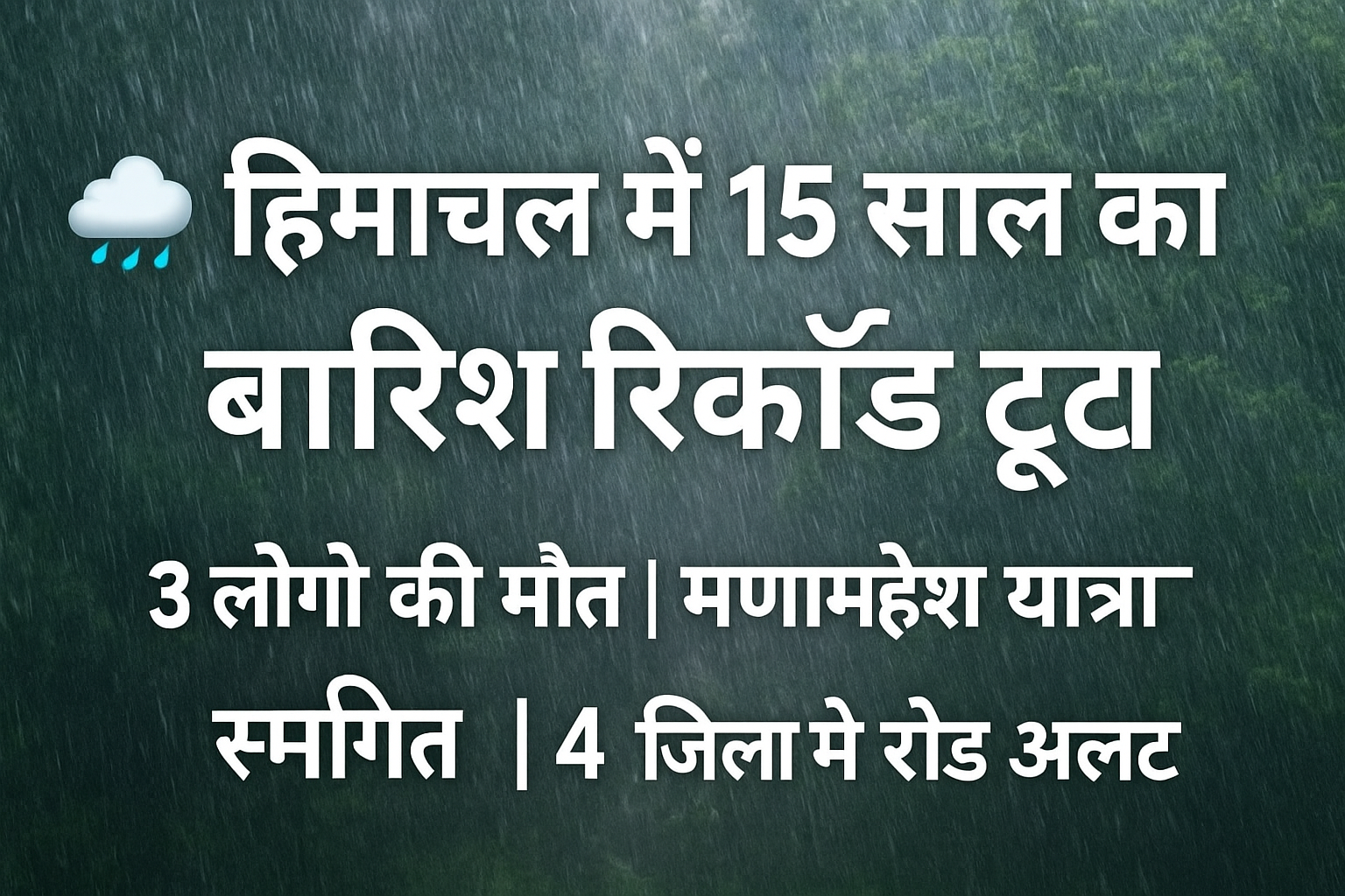 हिमाचल प्रदेश में इस बार अगस्त महीने ने 15 साल का बारिश रिकॉर्ड तोड़ दिया है। पूरे राज्य में अब तक सामान्य से 72% ज्यादा बारिश दर्ज की गई है, जिससे भूस्खलन, सड़क अवरोध और जान-माल की हानि जैसी आपदाएँ सामने आ रही हैं। ताज़ा घटनाओं में शिमला जिले में भूस्खलन से 3 लोगों की मौत हो गई, जबकि कई परिवारों को सुरक्षित स्थानों पर भेजा गया है। मणिमहेश यात्रा को भी खराब मौसम के कारण स्थगित करना पड़ा है। वहीं, पोंग डैम का जलस्तर अपनी अधिकतम क्षमता से ऊपर पहुंच गया है, जिसके चलते प्रशासन ने चार जिलों — ऊना, सिरमौर, बिलासपुर और सोलन में रेड अलर्ट और बाकी जिलों में ऑरेंज अलर्ट जारी किया है। मौसम विभाग ने आने वाले दिनों में और भारी बारिश की चेतावनी दी है।